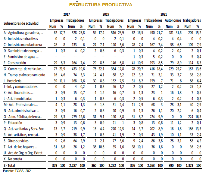A los anteriores sectores les sigue en importancia la hostelería que alcanza hasta el 8% de las empresas y el 7% de los trabajadores, así como también las administraciones que reúnen un 8% de las empresas y un 10% del empleo.