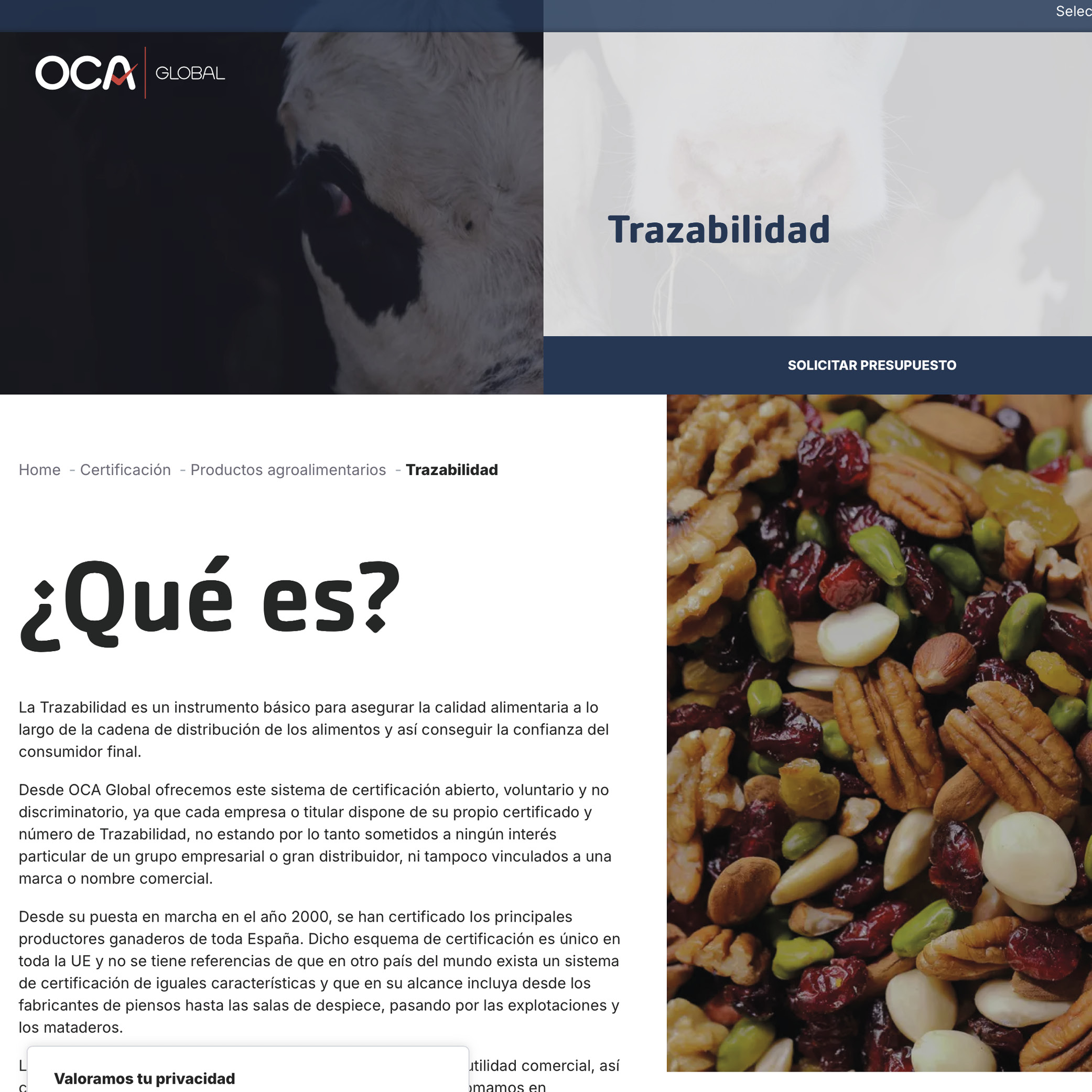 Oca Global ofrece sistemas de certificación y trazabilidad de productos agroalimentarios.