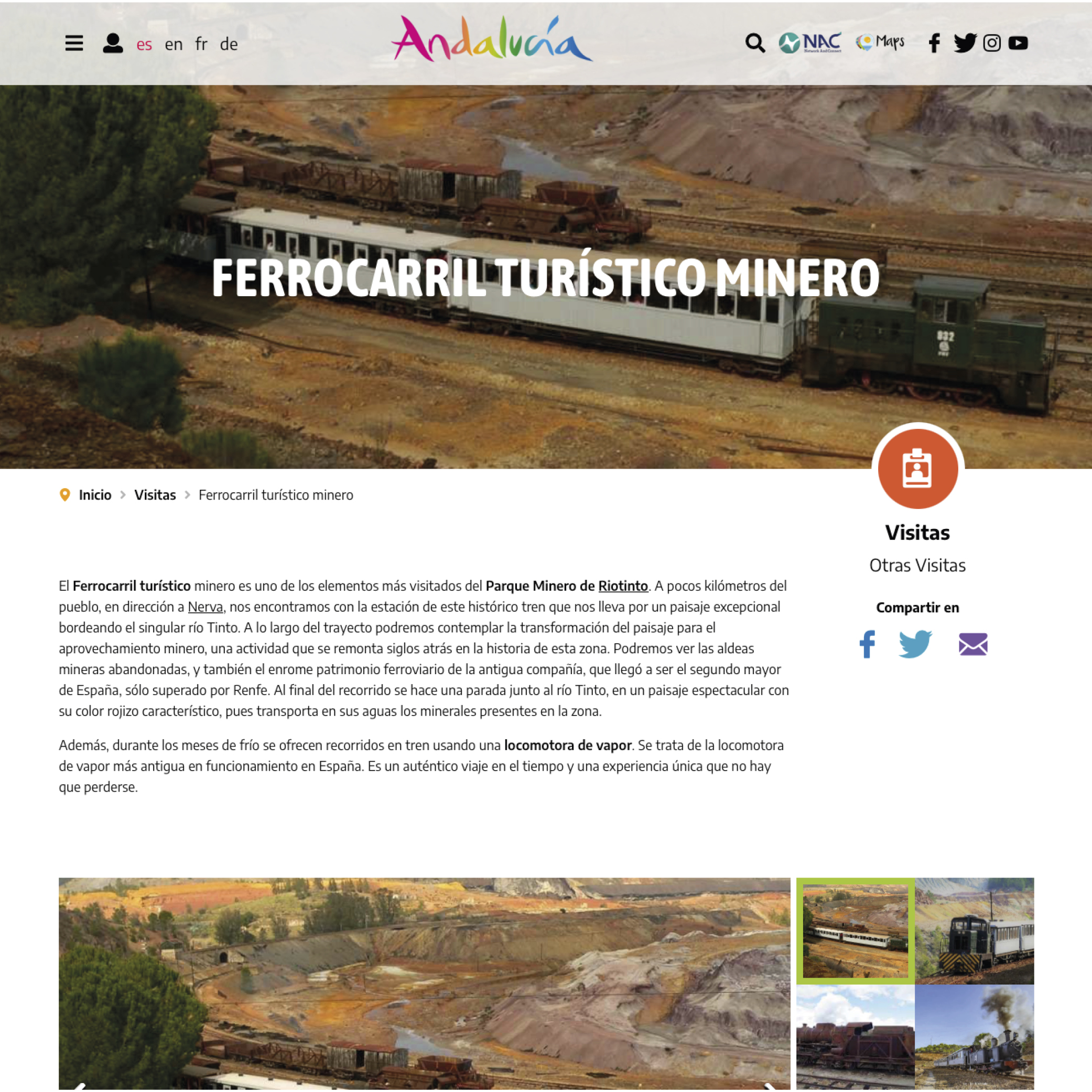 El Ferrocarril turístico minero es una actividad estrella del Parque Minero de Riotinto, está ubicado en Río Tinto (Huelva).